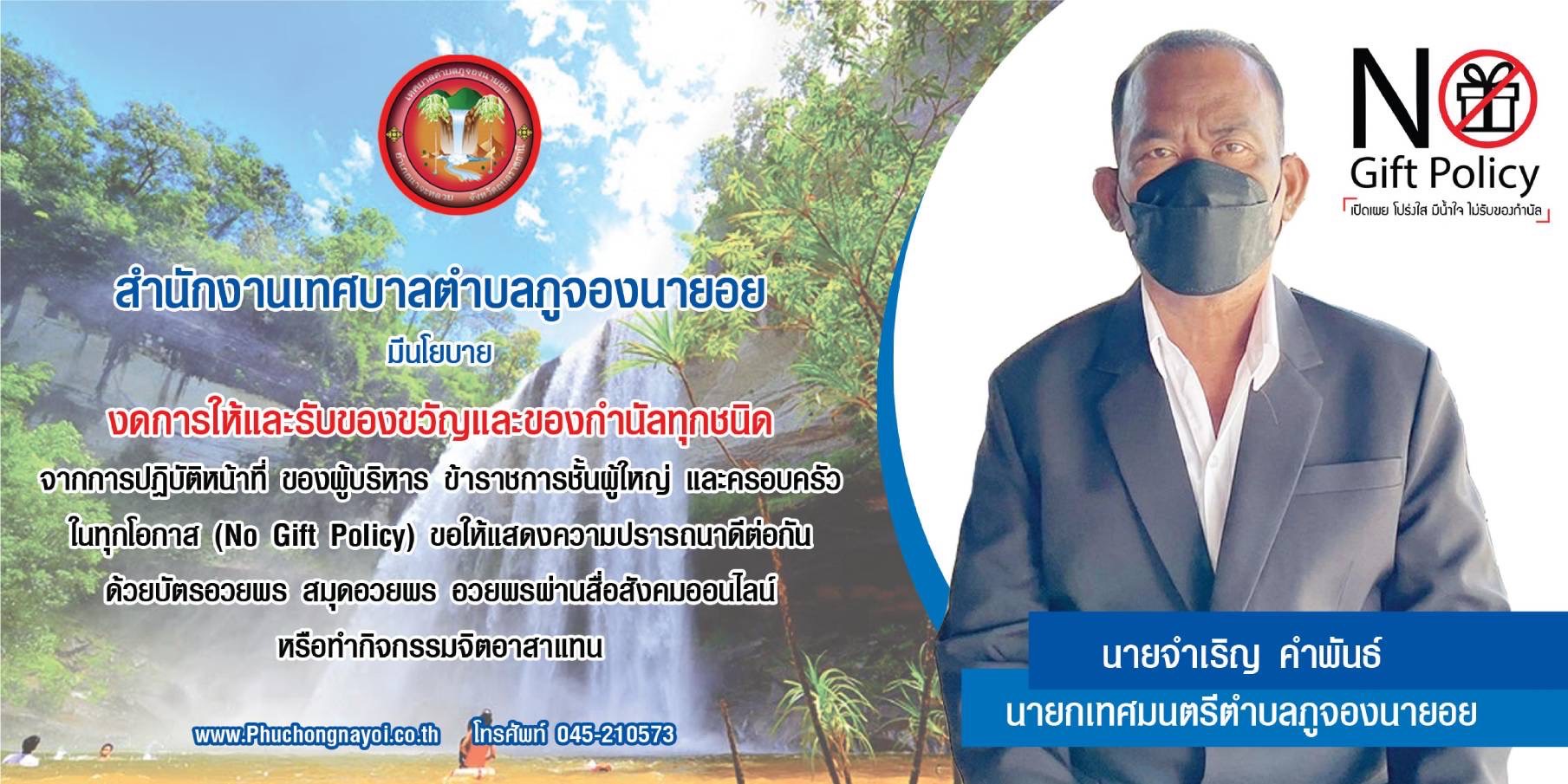นโยบายการสร้างวัฒนาธรรมองค์กร เสริมสร้างวินัย งดรับของขวัญ/กระเช้าในช่วงเทศกาลหรือโอกาสอื่นใด “NO GIFT POLICY” ส่งความปรารถนาดีผ่านบัตรอวยพรหรือผ่านสื่อออนไลน์แทน